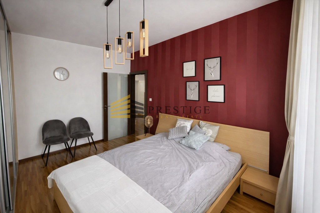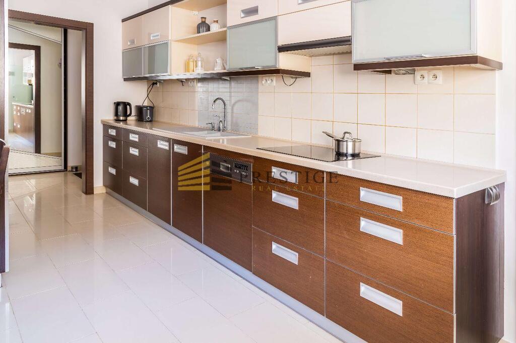 The apartment has been finished to a high standard, featuring exotic parquet flooring. The apartment is very functional – each room and the hall feature spacious built-in wardrobes. The living room and kitchen enjoy ample natural light throughout the day, while the bedroom area remains pleasantly shaded, making it ideal for relaxation. A sunny balcony is an added bonus.