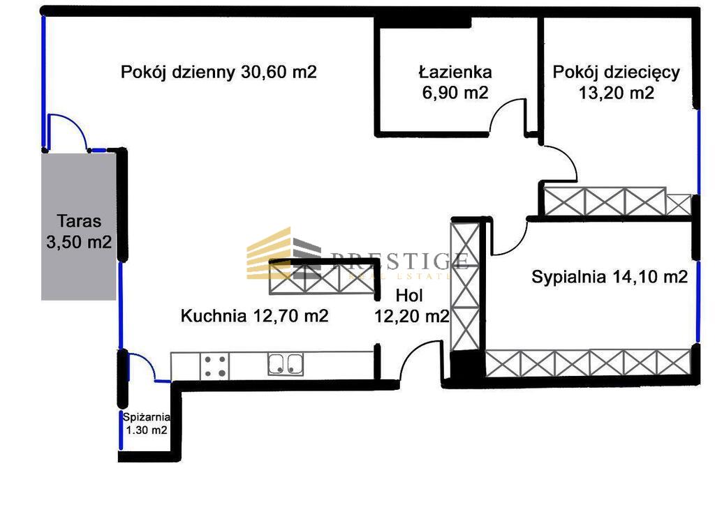 Kuchnia została w pełni wyposażona w wysokiej klasy sprzęt AGD marki Bosch, a także porcelanę, sztućce i garnki. Przy kuchni znajduje się praktyczny schowek gospodarczy, idealny do przechowywania odkurzacza, przetworów i innych domowych akcesoriów. W salonie znajduje się nowa, duża sofa oraz Smart TV.
