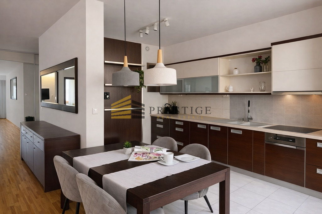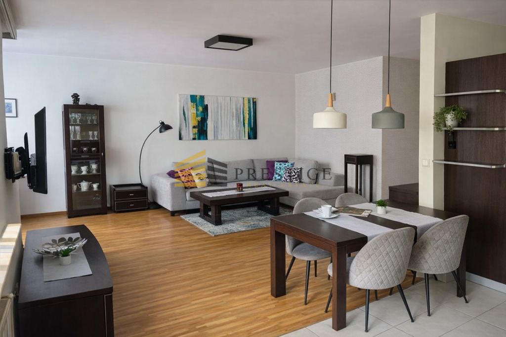 This bright, clean, and spacious apartment for rent is located on the second floor of the prestigious Eko Park development, right next to the Pole Mokotowskie park. It’s a comfortable and luxurious option for those who value high-quality finishes, a quiet neighborhood, and the convenience of everyday life.