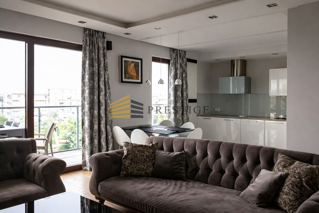 We invite you to familiarize yourself with the offer of renting an elegant apartment in the prestigious town of Wilanów! Modernly arranged and fully equipped (including household appliances and wireless internet access), the apartment offers comfortable living conditions in a unique location. Here you will find a spacious living room with an open kitchen, two bathrooms, a laundry room and a beautiful terrace – ideal for relaxation. The interior has been enriched with a fireplace and a floor heating system, which will provide additional comfort at any time of the year.